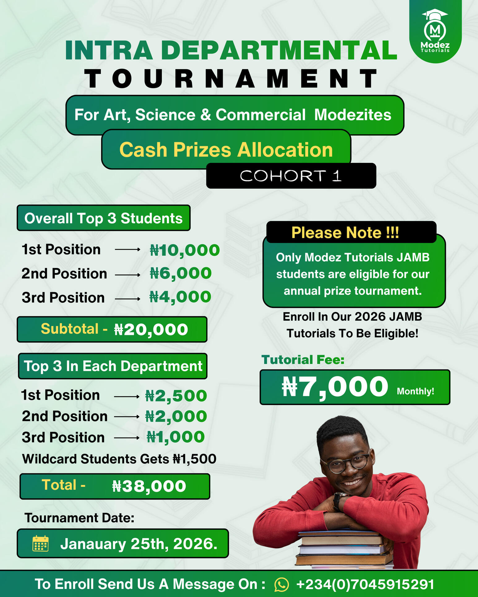 The Intra-Departmental Tournament on January 25th is where our students prove their progress. Whether you are in Science, Art, or Commercial, this is your chance to win cash prizes while getting better at your JAMB subject combinations.