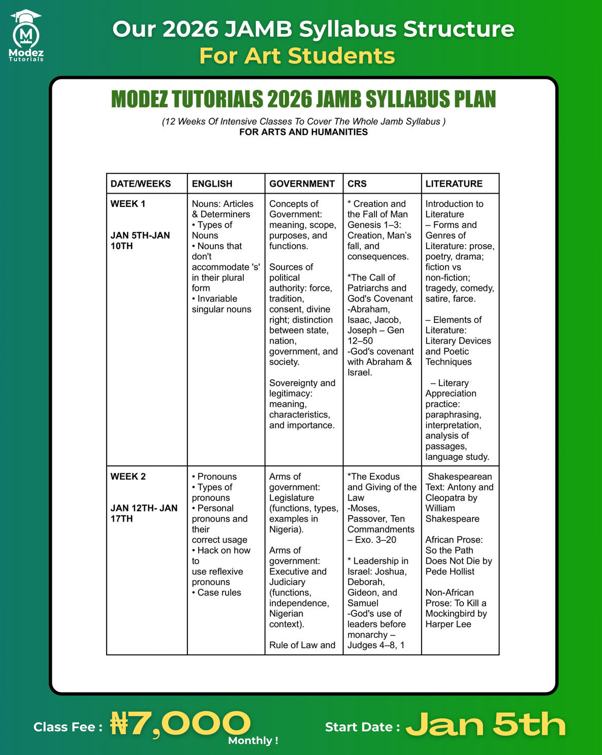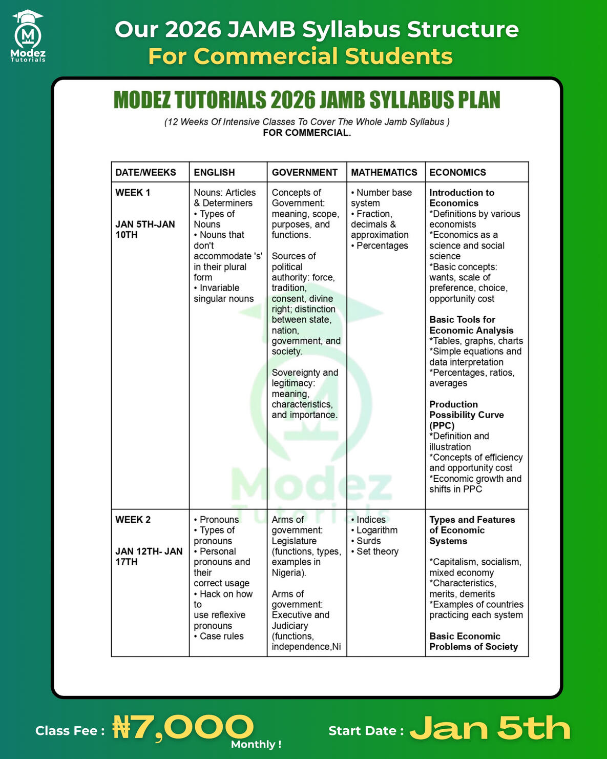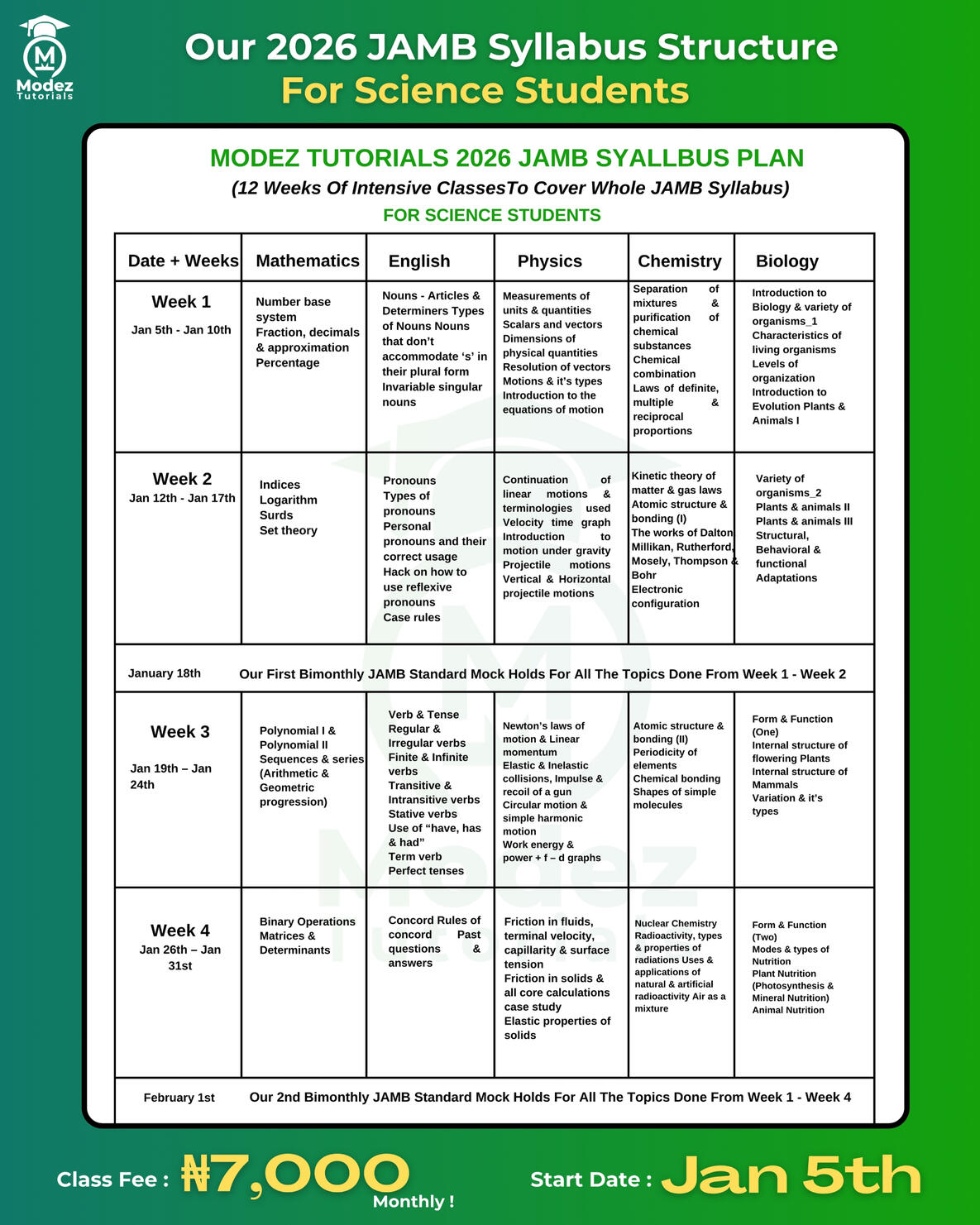 In Modez Tutorials 2026 JAMB Classes We'll Be Completing The Entire JAMB Syllabus For Art , Science And Commercial From A - Z Without Leaving A Single Topic Untouched!....See How We Plan To Do That Below