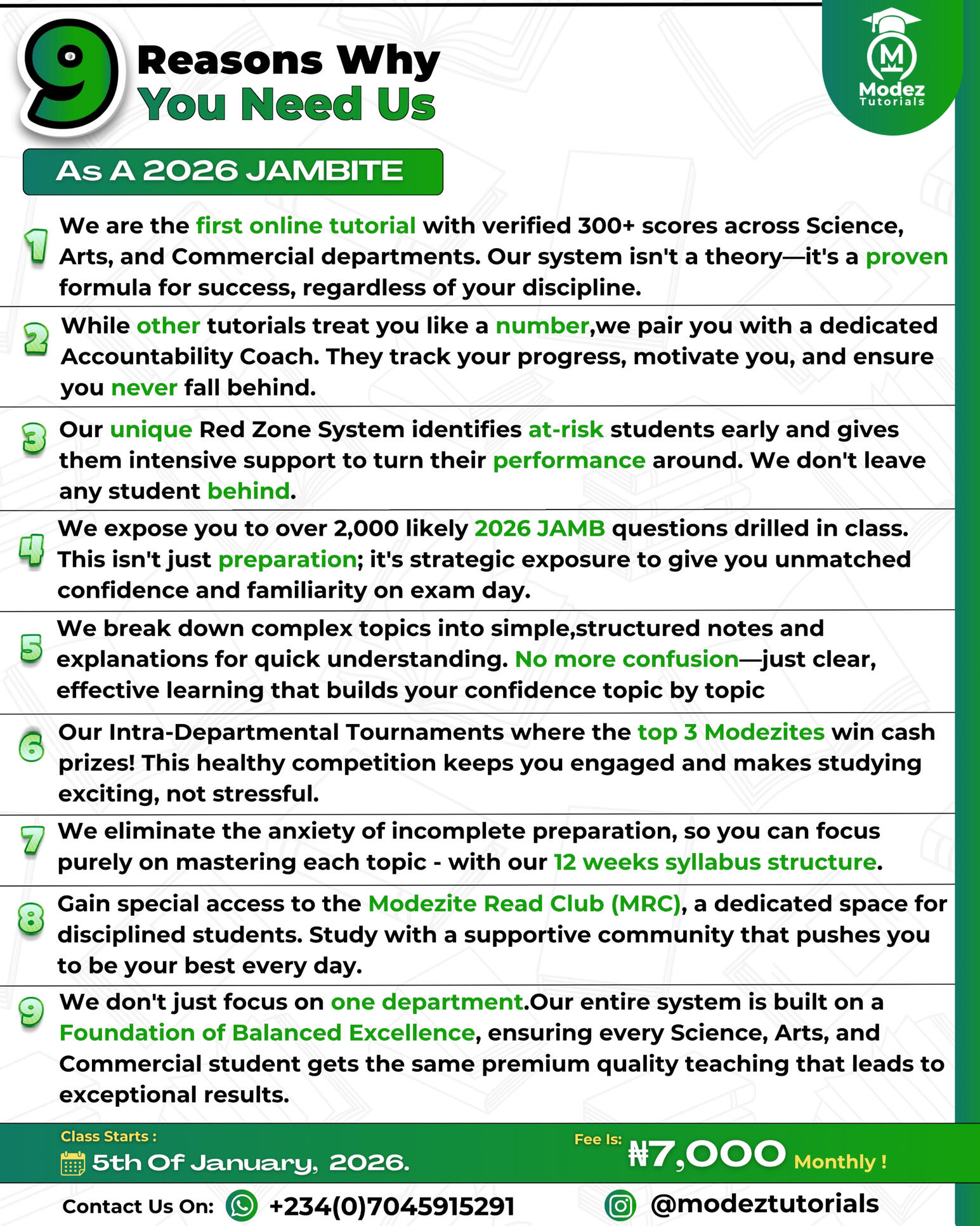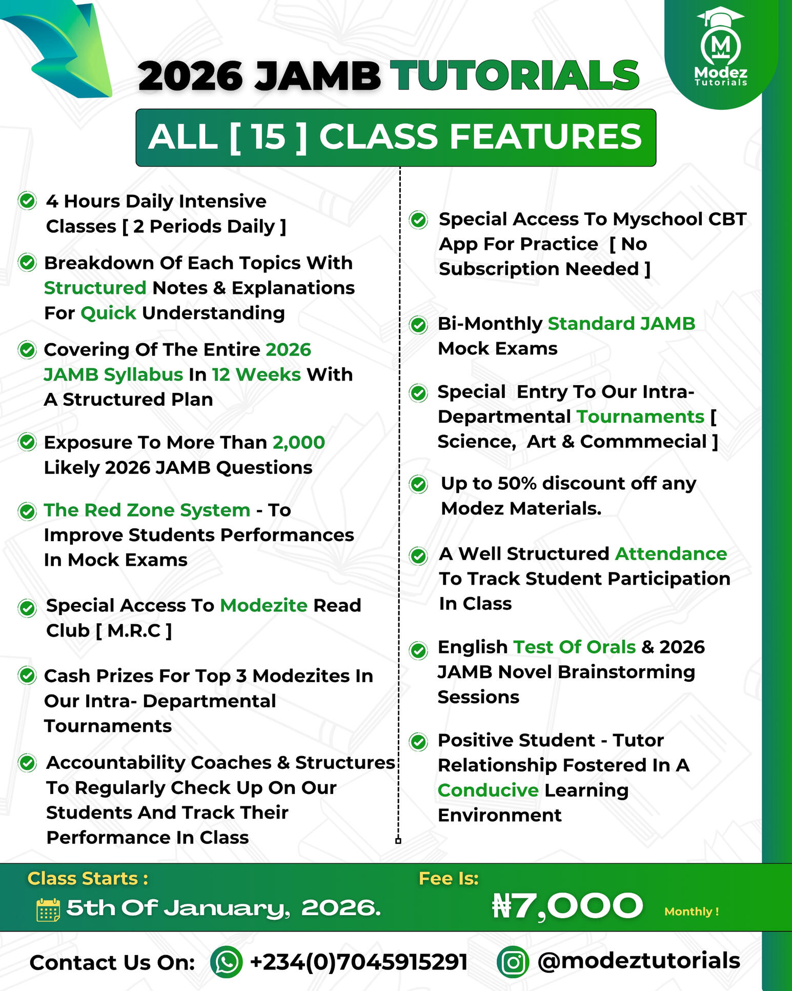 In less than two weeks, you'll be transformed into the scholar that you wished to be! There's no way you will be able to prepare yourself personally like the way Modez Tutorials will prepare you! That's fact!It will be very risky to miss our powerful 2026 JAMB classes, don't take such risk that can lead to failure and not gaining admission until 2027!Don't Waste Another 365 Days At Home !!!