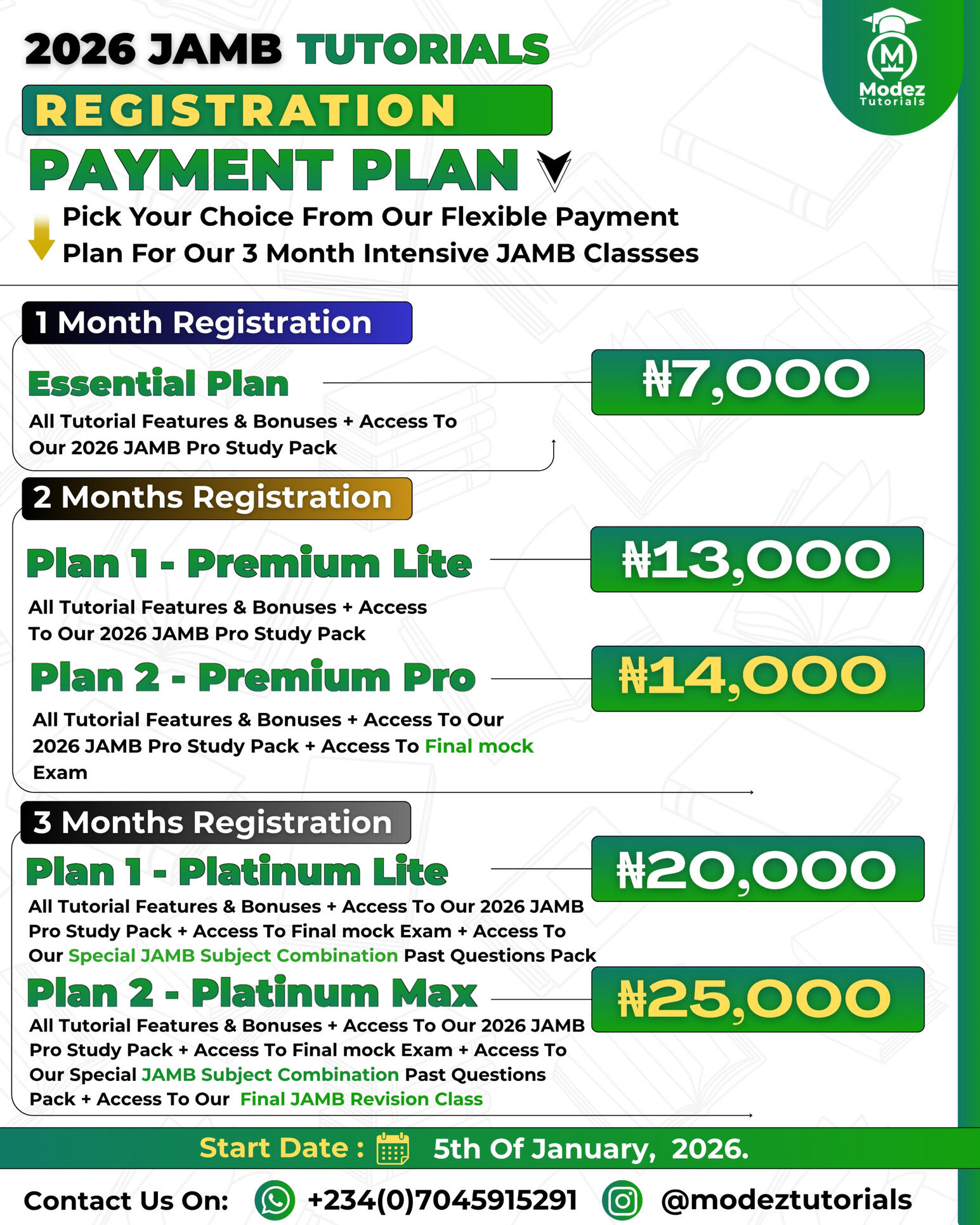 Our 2026 JAMB INTENSIVE PAID CLASS In Modez Tutorials Started On The 5th Of January, 2026 and this class is currently ongoing & will run for 12 weeks which is exactly 3 Months , January 5th Till March 28th and it holds online for all Science , Art And Commercial Students.In This Class [ Within 3 Months ] We'll Be Completing The Entire JAMB Syllabus With A Structured Schedule Already In Place With Necessary Materials To Help You Blast More Than 300 In 2026 JAMB.Also Note That Our 2026 JAMB Tutorials Will Be In Two Phases , In Phase 1 We'll Be Completing The Entire JAMB Syllabus In 12 Weeks ,While In Phase 2 We Go Through Everything A Second Time In An Intensive Revision Phase To Lock In Your Knowledge Before The Exam.**You'll Get To Learn More About How We Plan Complete The JAMB Syllabus In 3 Months As You Go Through This Webpage
